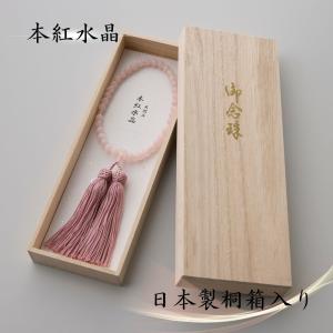 数珠 本紅水晶(ローズクウォーツ) 日本製桐箱付き