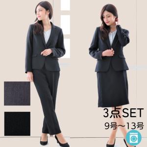 スーツ 3点セット スカートスーツ パンツスーツ レディース オールシーズン 洗える グレー 黒 9号 11号 13号