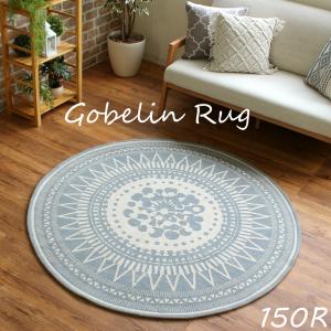 ラグ 円形 北欧 洗える ゴブラン織りラグ トイン 150cm円形 グレー ゴブラン ラグ おしゃれ メダリオンデザイン カーペット ラグマット 滑り止め 手洗いOK