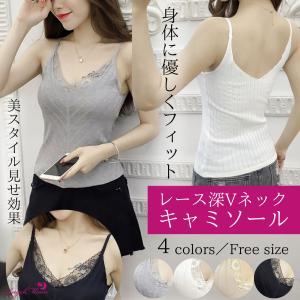 キャミソール レディース レース Vネック ニット インナー アウター きれいめ タンクトップ