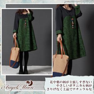 ワンピース 膝丈 長袖 バイカラー 切替 花柄 ゆったり レディース