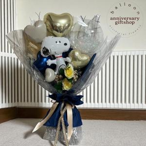 スヌーピーバルーンブーケNV くすみカラー 誕生日 卒業式 成人式 送別 ウエディング バルーンと造花 花束 バルーンアート発表会 バレエ ピアノ ダンス