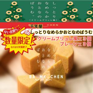 千年屋 しっとりなめらかおとなのばうむ バウムクーヘン クリームブリュレ プレーン 2種 各3個 洋菓子 個包装 小分け お試し ポイント消化 爆買