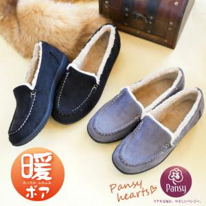モカシン レディース ボア ファー 靴 パンジー pansy 暖かい もこもこ スリッポン 撥水加工 軽量 滑りにくい ラウンドトゥ フラットソール 痛くない 3E 屈曲