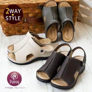 Pansy パンジー サンダル レディース 2way つっかけ バックバンド 軽い コンフォート フットベッド ウエッジソール オープントゥ 脱ぎ履きしやすい 3e