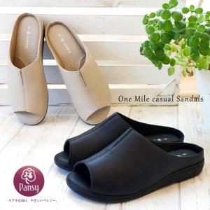 pansy パンジー ミュールサンダル サンダル レディース つっかけ フラットソール オープントゥ ワンマイル オフィス 室内履き 軽量 痛くない 楽ちん 屈曲 3e