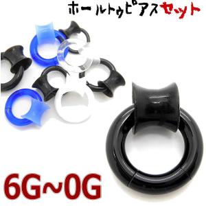 ホールトゥピアス セグメントリング ボディピアス 6G 4G 2G 0G UV アクリル シリコン 黒 透明 青 白 uv13