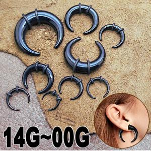ボディピアス 14G〜00G Oリング付き アクリル バッファロー ホーン型 プラグ 黒 ブラック 耳 鼻ピアス uv20