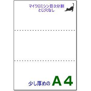 厚口ミシン目用紙 A4 白 3分割 穴なし