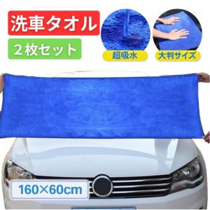 洗車タオル 超吸水 大判 2枚セット 160cm×60cm 業務用 吸水 マイクロファイバークロス タオル 速乾 拭き上げ 柔らかい 洗車グッズ