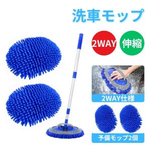 洗車モップ 伸縮式 ロング グローブ 2WAY マイクロファイバー 洗車グッズ ブラシ ボディ ホイール 車 ガラス 柔らかい 大型車 トラック