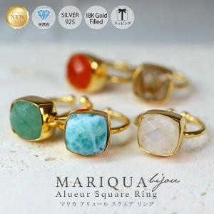 ★MARIQUA bijou 18kgf 天然石 マリカ ビジュー アリュール スクエア リング ★18k シルバー925 カーネリアン アベンチュリン