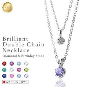 ★12月 誕生石 タンザナイト × 一粒ダイヤ ダブルチェーンネックレス★ 幸せのアイテム シルバー925 プラチナコーティング誕生日