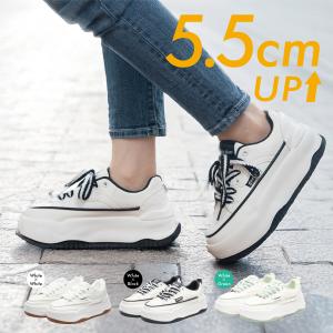 スニーカー 厚底 レディース 5.5cm 身長UP レースアップ シューズ フラット ソール インヒールなし 防水 通学 通勤