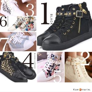 ハイカット スタッズ スニーカー レディース ゴールド ジップ スカル チャーム 全8色 /白 黒 デニム 花柄 ヒョウ柄