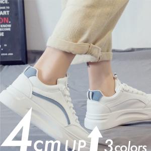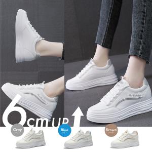 厚底スニーカー レディース インヒール 身長up 美脚 シークレットシューズ PU 紐靴 ホワイト レースアップ 6cmUP