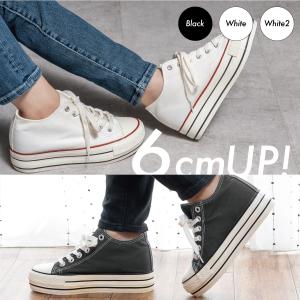 厚底 スニーカー レディース ミドルカット キャンバス 脚長 美脚 細見え インヒール 6cmUP/ブラック ホワイト ネイビー