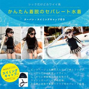 子供 セパレート 水着 ラッシュガード 黒 ストライプ ターバン キャップ 付き 90〜150