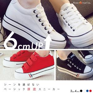 厚底 インヒール キャンバス スニーカー レディース シューズ 美脚/2種4カラー レースアップ・ベルクロ /ホワイト ブラック ネイビー レッド Kaenarie
