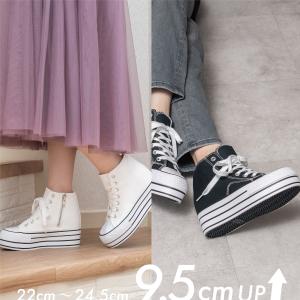 厚底スニーカー レディース ハイカット スニーカー インヒール キャンバス 9.5cm 身長UP 黒 白 歩きやすい 美脚 おしゃれ
