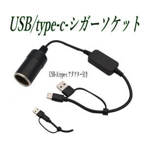 USB ポート AとC変換可能-シガーソケット電源取出し USB-シガライター変換 延長コード 12V車専用 30cm