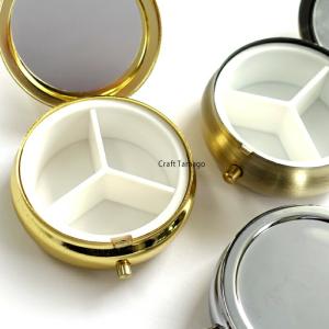 レジン用土台 ピルケース 仕切り有り 3分割 丸型 内側ミラー付き 53mm 1個 資材 素材 アクセサリー パーツ 材料 ハンドメイド 卸 問屋 手芸 r606-rs