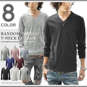 Tシャツ メンズ 長袖 Vネック 無地 カットソー ランダムテレコ ロングTシャツ スリム キレイメ