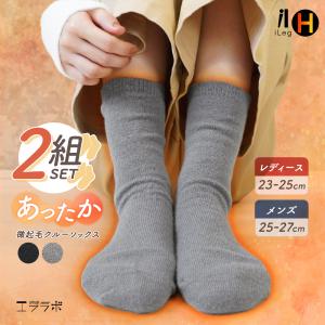 【2足セット】裏起毛 靴下 ソックス レディース メンズ 冬用 暖かい あったかい 厚手 クルーソックス クルー丈 防寒対策 秋冬 くつ下 無地 iLegH *2*y3-2t
