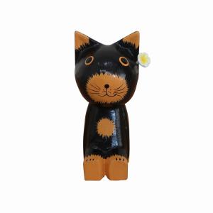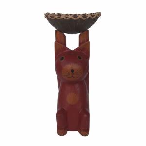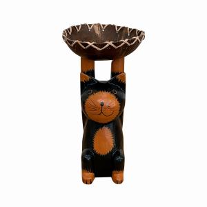 ココナッツトレイ持ち上げ猫 ブラック トレー 小物入れ バリネコの木彫り ネコの置物 猫の置物 ねこの置物 バリ猫 010220
