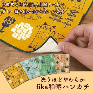 ハンカチ fika コットン100% ドビー織 生地 猫 花 星 森 鳥 動物グッズ 和晒 女性 子供 日本製 デコレ プレゼント ギフト