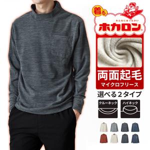 裏起毛 フリース 長袖Tシャツ メンズ あったか ストレッチ 着るホカロン 防寒 選べるクルーネック・ハイネック 送料無料 通販YC