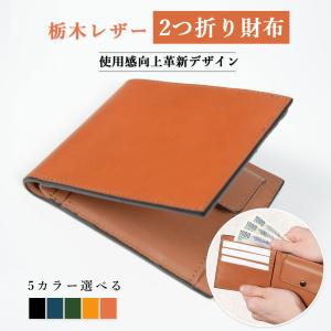 [30%OFFクーポン対象・5のつく日P10倍]財布 メンズ 栃木レザー 二つ折り財布 本革 折りたたみ 小銭入れ さいふ 紳士用 ビジネス プレゼント オレンジ