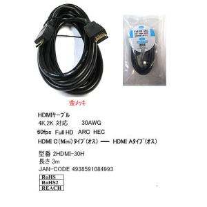 【2HDMI-30H】ミニHDMI/HDMIケーブル C(Mini)-Aタイプ 3m