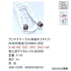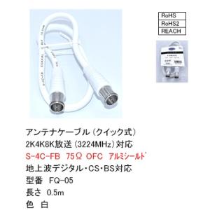【F-05】アンテナケーブル(白) 0.5m 同軸 S4C-FB 地デジ対応 ネジ式