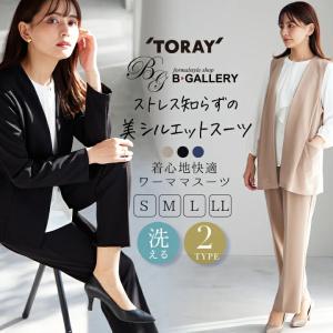 セレモニースーツ レディース のびやか素材2点セット ジャケット パンツ ジレ ベスト ストレッチ 洗える ママスーツ マザースーツ 入学式 (230413777)