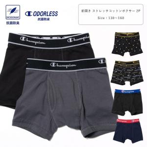 Champion 抗菌防臭 コットン ストレッチ ボクサーパンツ 2P 2枚組 前開き 下着 キッズ ジュニア 男の子 130 140 150 160 グレー/紺/黒 cb6et701 [BB-22]