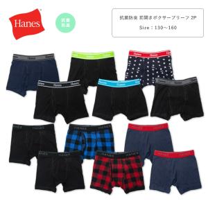Hanes ヘインズ 抗菌防臭 2枚組 ボクサーパンツ キッズ ジュニア コットンストレッチ 綿100% 前開き 男子 男の子 130 140 150 160 hb6ez701 hb6ez702 [BB-04]