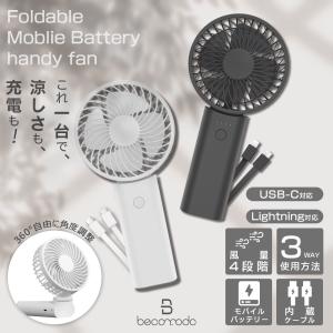 3WAY携帯扇風機 モバイルバッテリー機能付き ハンディ・卓上・首かけ対応 USB充電式 小型軽量 ミニ扇風機 PSE認証