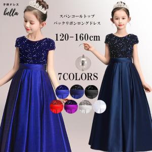発表会ドレス 子供ドレス 女の子 スパンコール チュール ノースリーブ ロング丈 プリンセス フォーマル ピアノ 発表会 結婚式 記念日 120 130 140 150 160cm