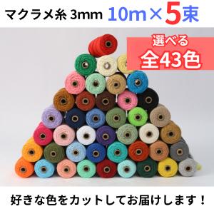 マクラメ糸 ロープ ヤーン 3mm 10m×5束 選べる全43色 コットン 綿 ひも 紐 ハンドメイド タペストリー DIY タコ糸