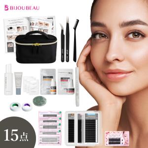 マツエク セルフ 15点セット 選べるエクステ&グルー マニュアル冊子付 スターターキット 初心者 グルー まつ毛エクステ 簡単 プロ サロン仕様 高品質