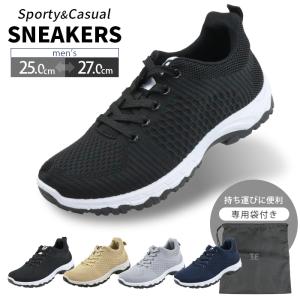 スニーカー 黒 メンズ 収納袋付き ウォーキングシューズ 軽量 ニット 旅行 屋内 トレーニング おしゃれ 紐 グレー 運動 アウトドア カジュアル