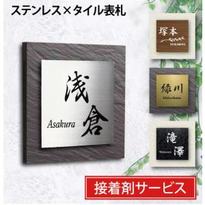 表札 戸建 タイル ステンレス おしゃれ 表札 サイズ 14.4x14.4cm タイル表札 ステンレス表札 接着剤 プレート 住所 二世帯 屋外 北欧 IF-6007ifm