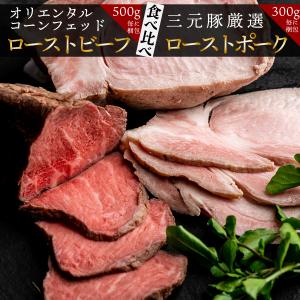 牛もも肉ローストビーフ & ローストポーク 食べ比べ セット 800g 店舗特製ソース レホール わさび 付 bonbori ぼんぼり お取り寄せ 誕生日 お歳暮 送料無料