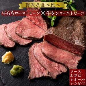 牛タン & 牛もも 無添加 ローストビーフ 食べ比べ 1kg ソース わさび レホール付 お歳暮 クリスマス 年末年始 bonbori 熟成 赤身 牛たん 上たん 送料無料