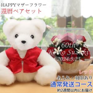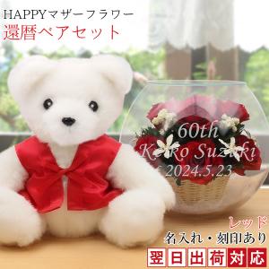 還暦祝い 女性 プレゼント 赤いちゃんちゃんこを着た 還暦ベアセット HAPPYマザーフラワー 赤色 翌日発送コース プリザーブドフラワー 名入れ 花 赤いもの