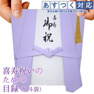 喜寿のお祝い プレゼント用 紫のちゃんちゃんこの 喜寿祝いのための目録と熨斗袋 贈り物 祝儀袋 のし袋 金封 お祝い袋 封筒 目録 喜寿 77歳 男性 女性 贈り物