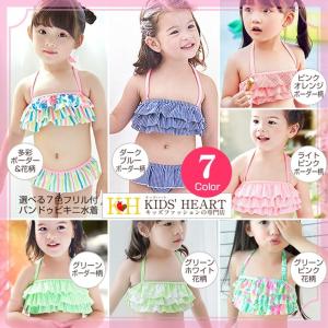 子供水着 フリル付 花柄カッティングサイド ボーダー柄ワンピース水着 キッズ かわいい 女の子 ワンピース メール便送料無料 売れ筋 新商品