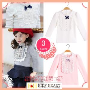 フォーマル 立ち襟レース・リボン・パール長袖トップス 裏起毛 入園式 卒園式 入学式 卒業式 発表会 お受験 制服 コンクール【売れ筋】【新商品】