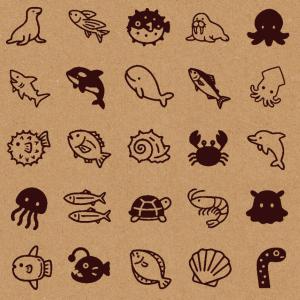 スタンプ 手帳用 1cm角 1.5cm角 2cm角 カレンダー用 海の生き物シリーズ かわいい はんこ 日記 バレットジャーナルに BREAブレア